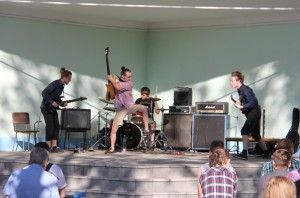 | 26 июля на летней эстраде парка ДК «Мир» играла команда «Четыре визуальные стены». Фанаты, собравшиеся в парке, поддерживали любимый коллектив бурными аплодисментами. В результате искрометной игры на гитарах и сильных ударов по барабану, концерт закончился убедительной победой команды «Четыре визуальные стены». Ребята показали зрелищную игру, насыщенную отработанными на тренировках комбинациями. К вашему вниманию «опасные» моменты концерта. Далее…