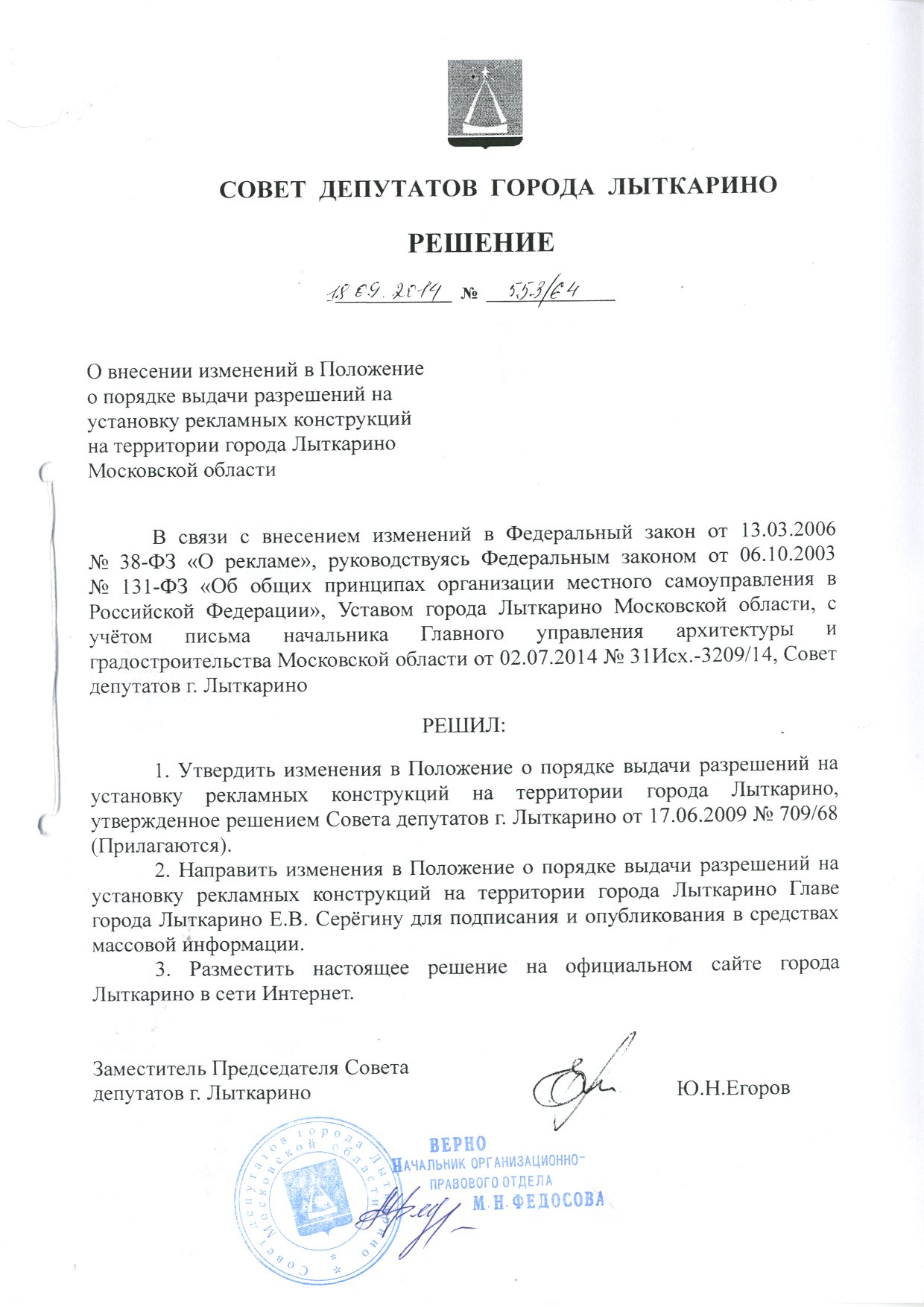 Решение Совета депутатов от 18.09.2014 № 533/64