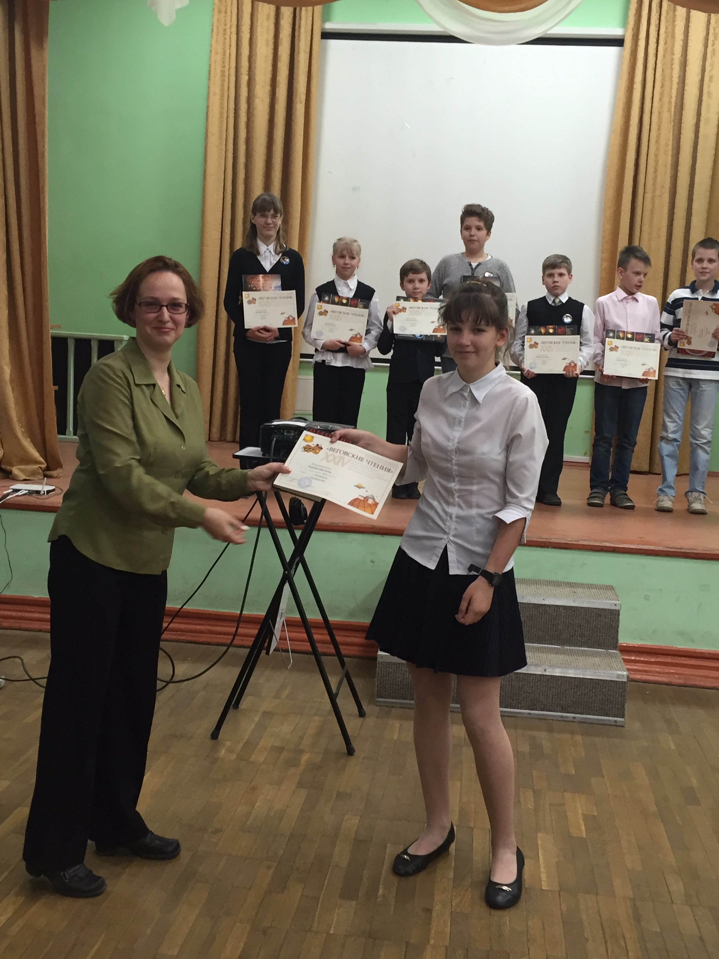 22 мая в Москве прошла открытая юношеская реферативно-практическая астрономическая конференция «Веговские чтения». Обучающиеся МОУ Гимнзии № 1 уже не раз принимали в ней участие, и этот год не стал исключением. В этом году на конференции были представлены 144 работы из разных уголков Подмосковья и нескольких образовательных центров Москвы. Наши ребята достойно представили свое образовательное учреждение и не подвели своего научного руководителя Таперо Татьяну Юрьевну. По итогам конференции Чумоватова Анна (8 класс) заняла 1 место, Таперо Максим (9 класс) – 1 место, Нам Дарина (9 класс) – 2 место. Поздравляем ребят с победой и желаем им дальнейших успехов!
