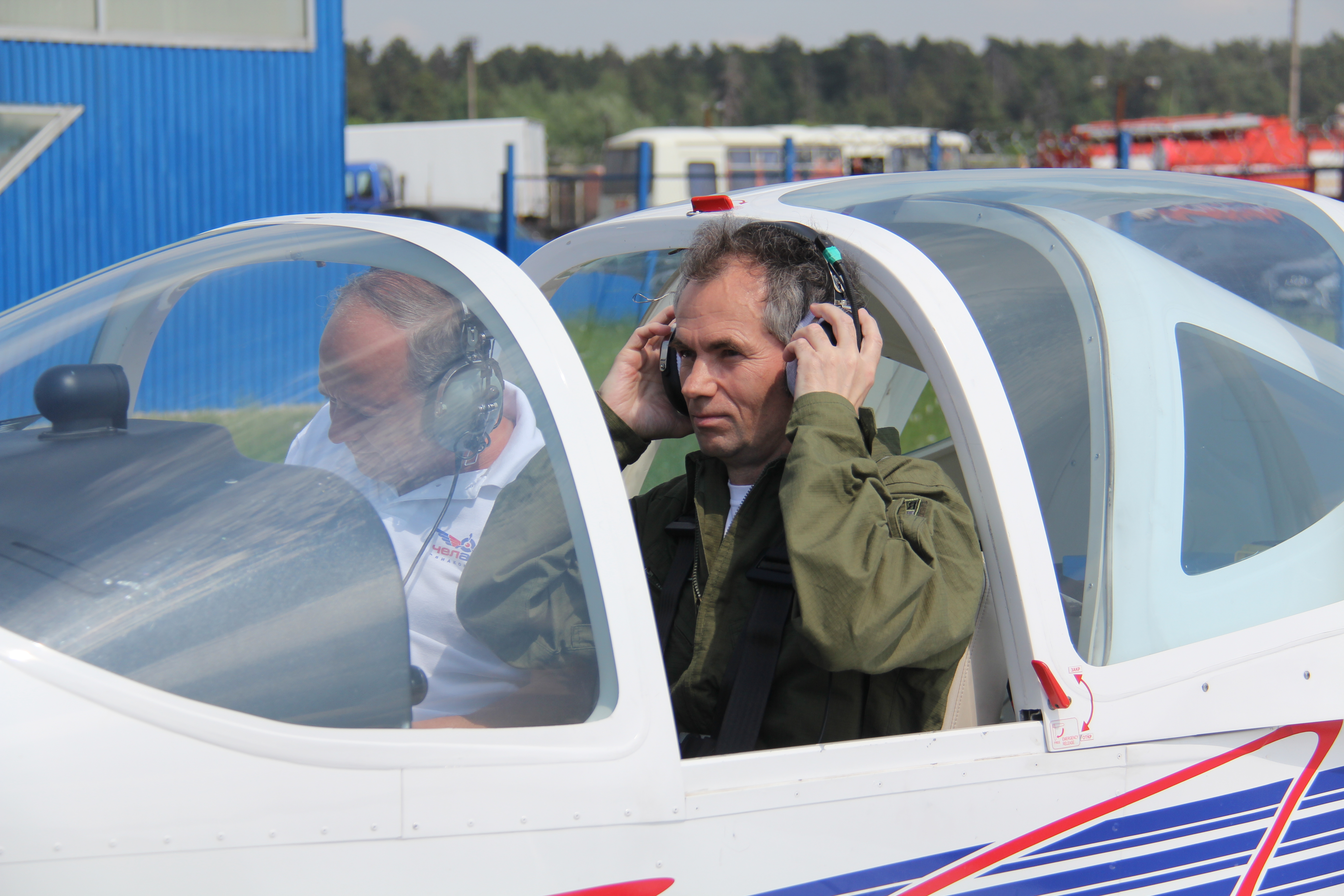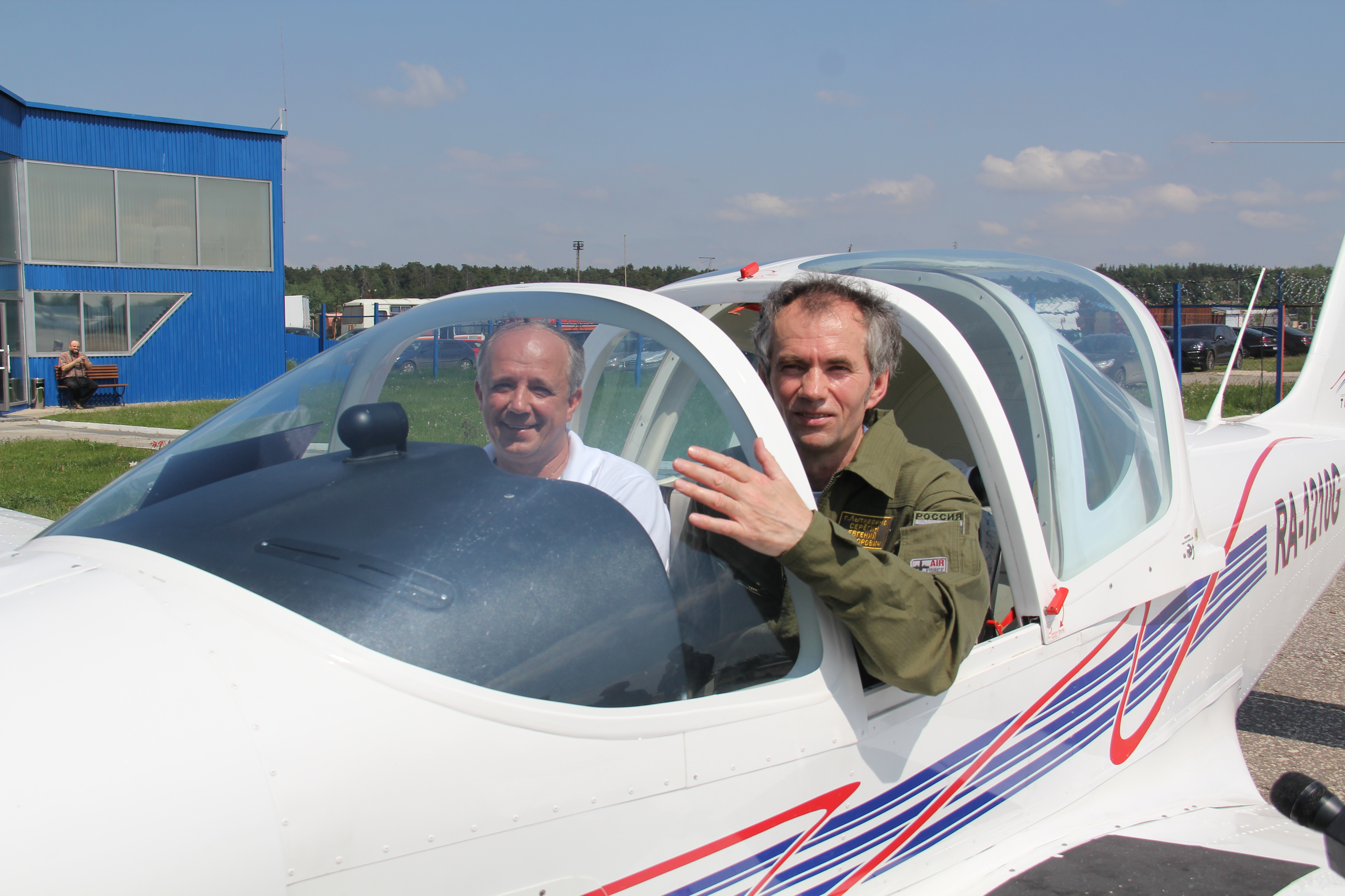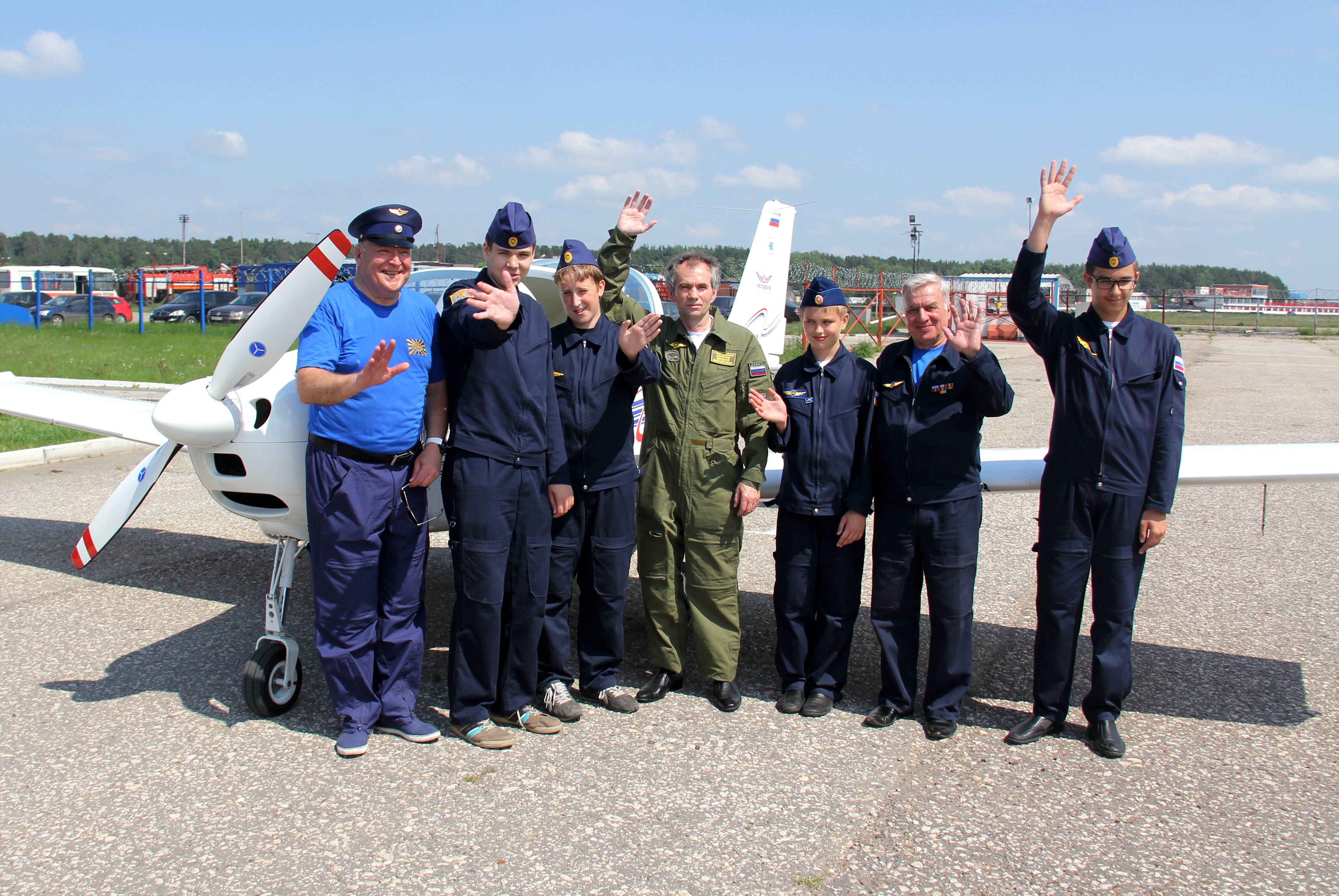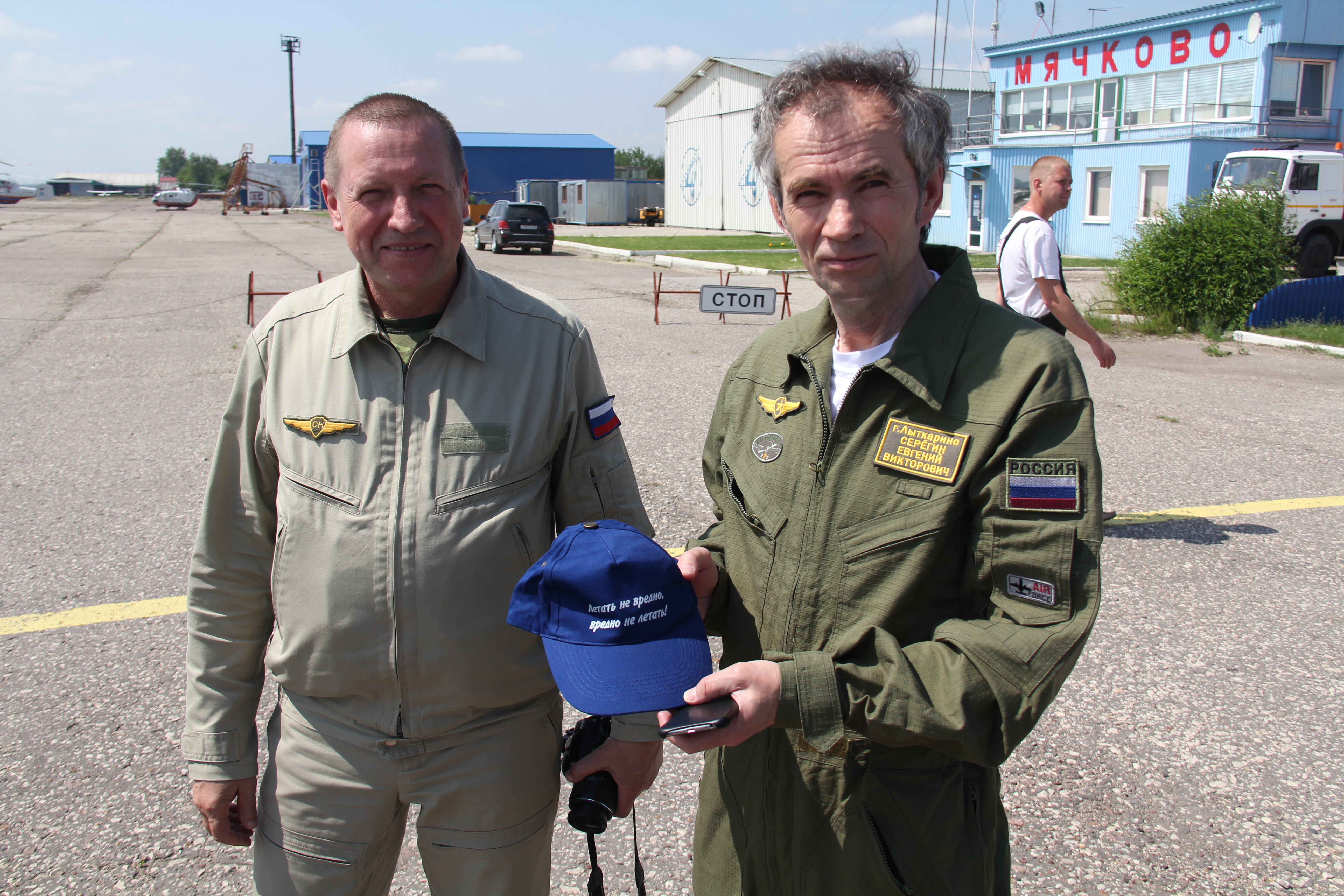 Курсанты лыткаринской авиашколы, 80-летний ветеран Евгений Яковлевич Власов и Глава города Лыткарино Евгений Серёгин совершили полеты на аэродроме в Мячково.