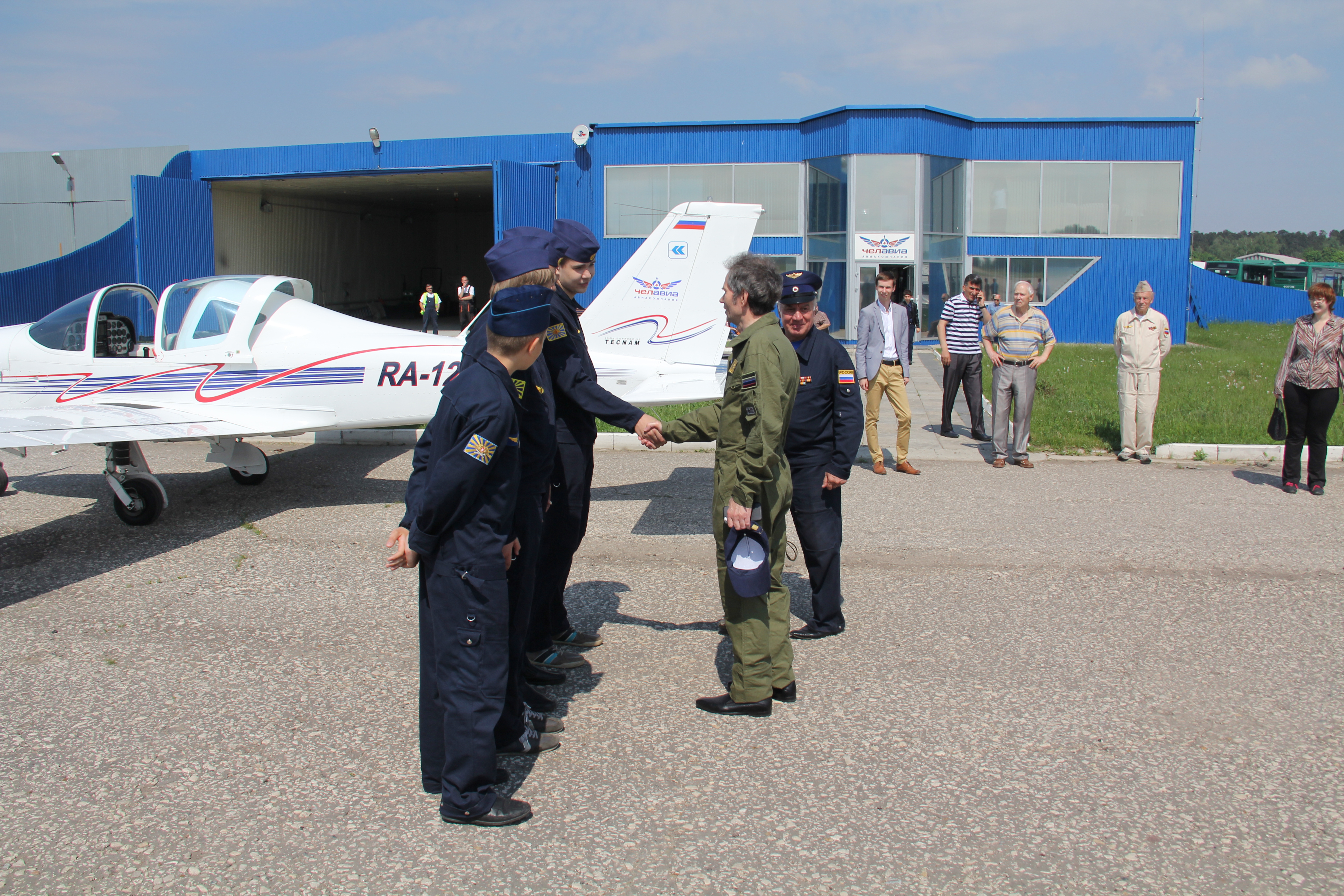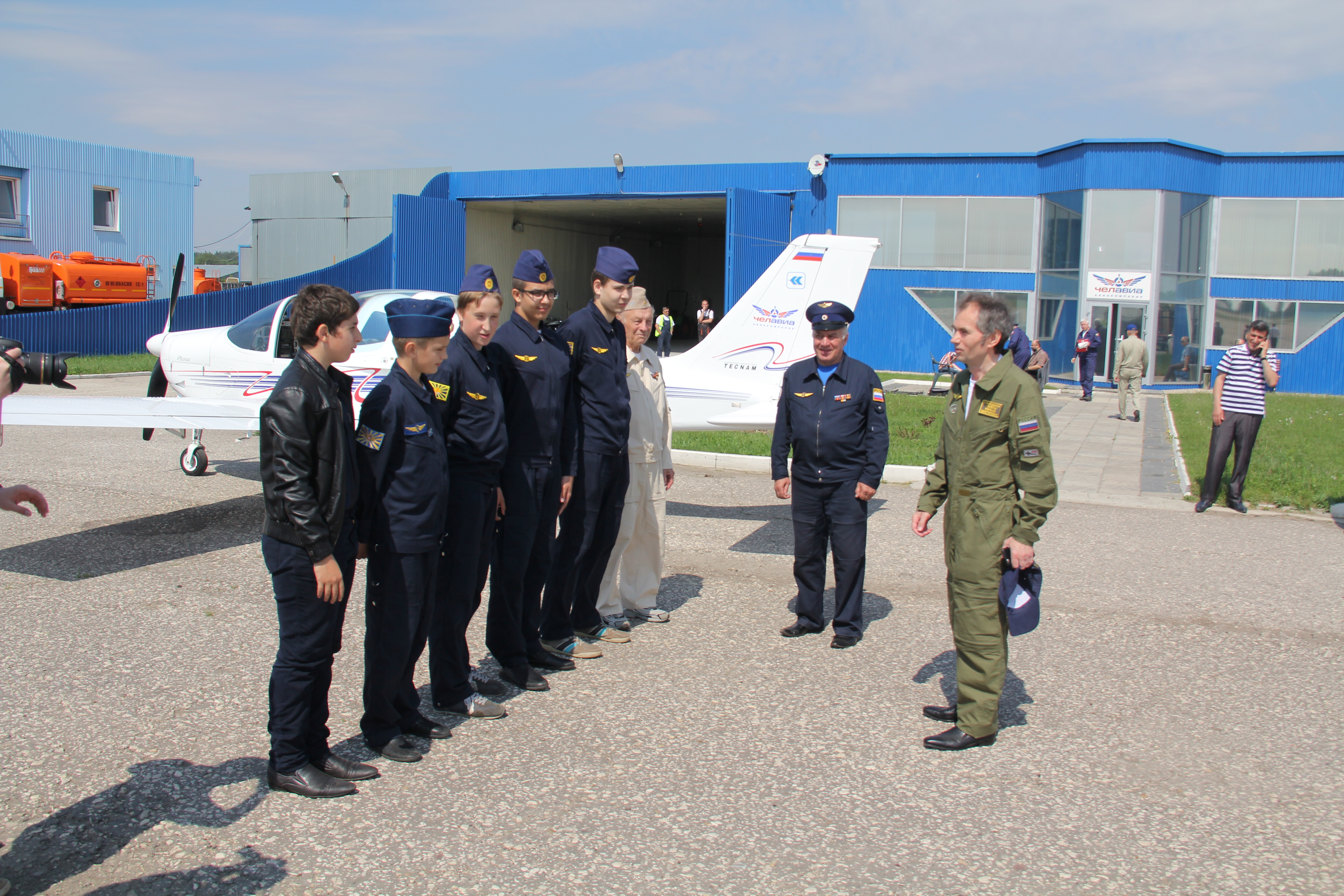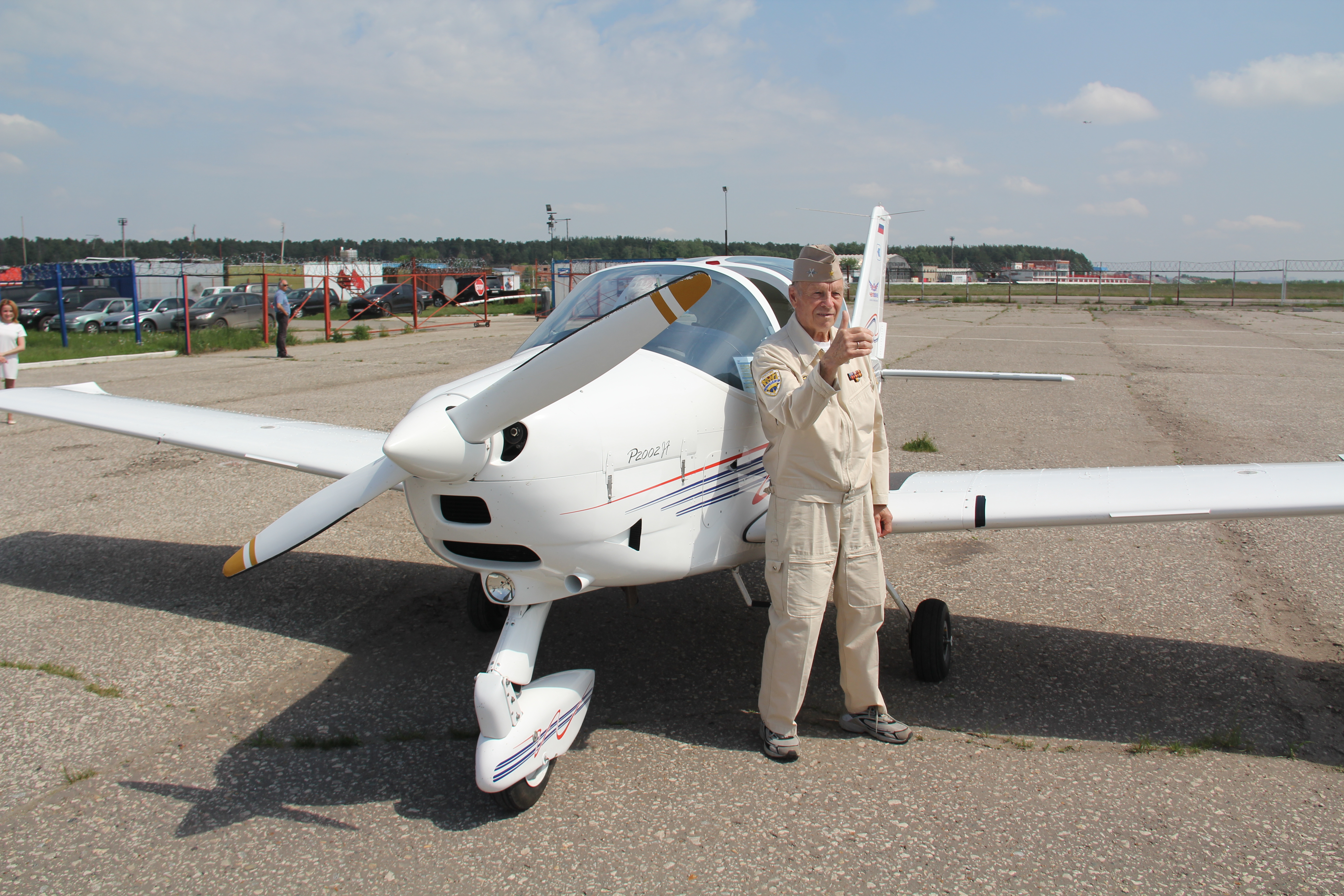 Курсанты лыткаринской авиашколы, 80-летний ветеран Евгений Яковлевич Власов и Глава города Лыткарино Евгений Серёгин совершили полеты на аэродроме в Мячково.