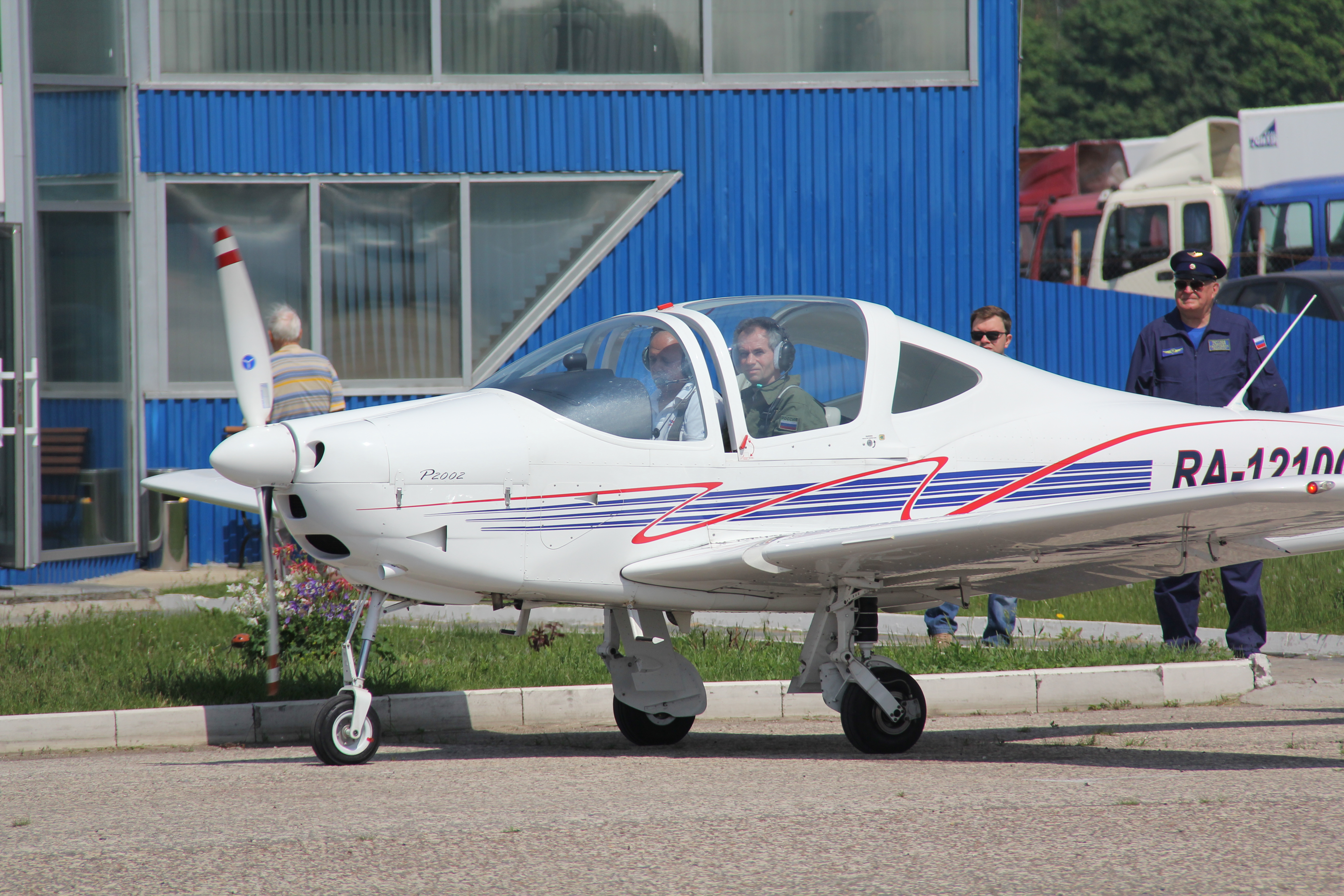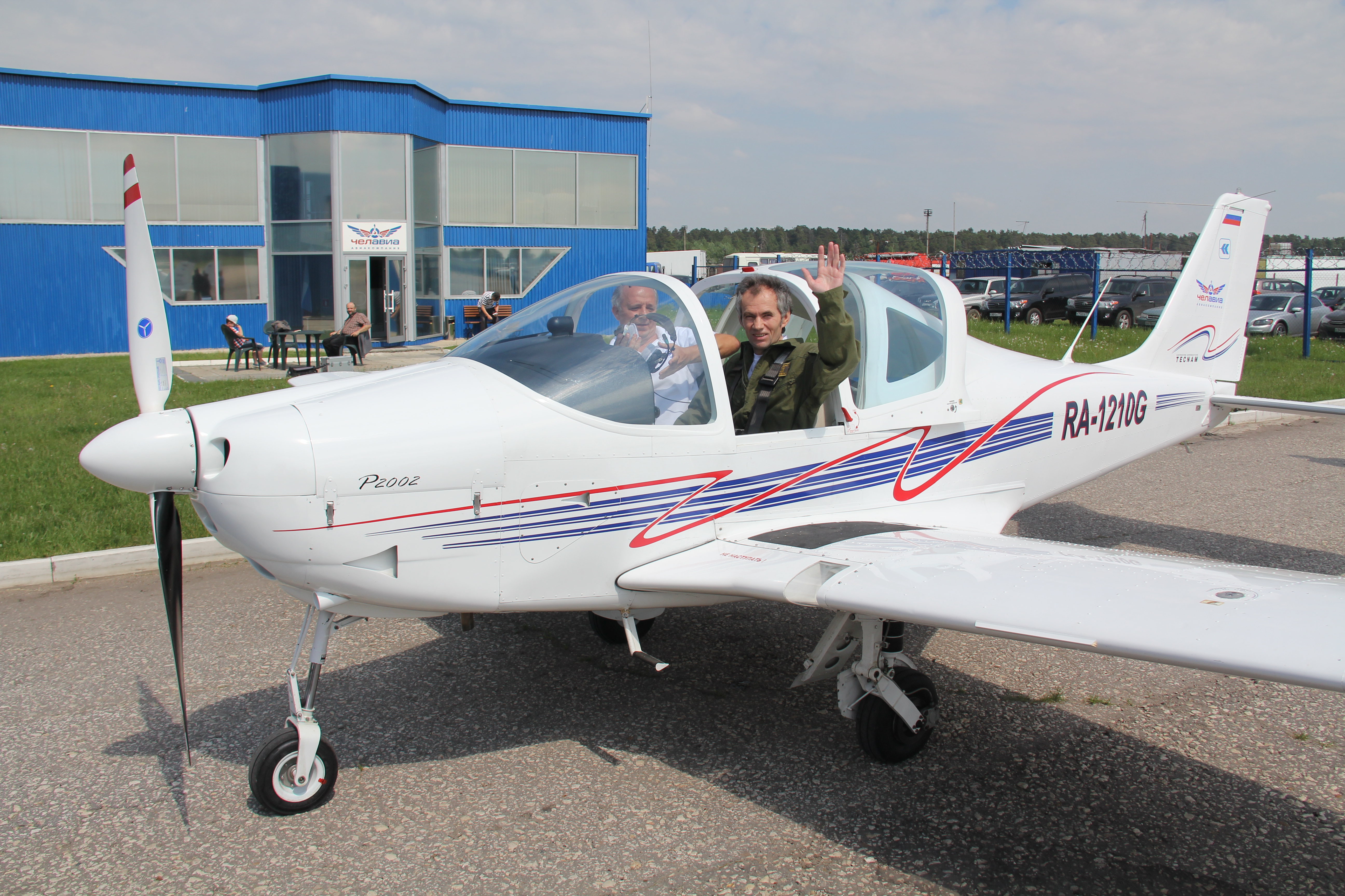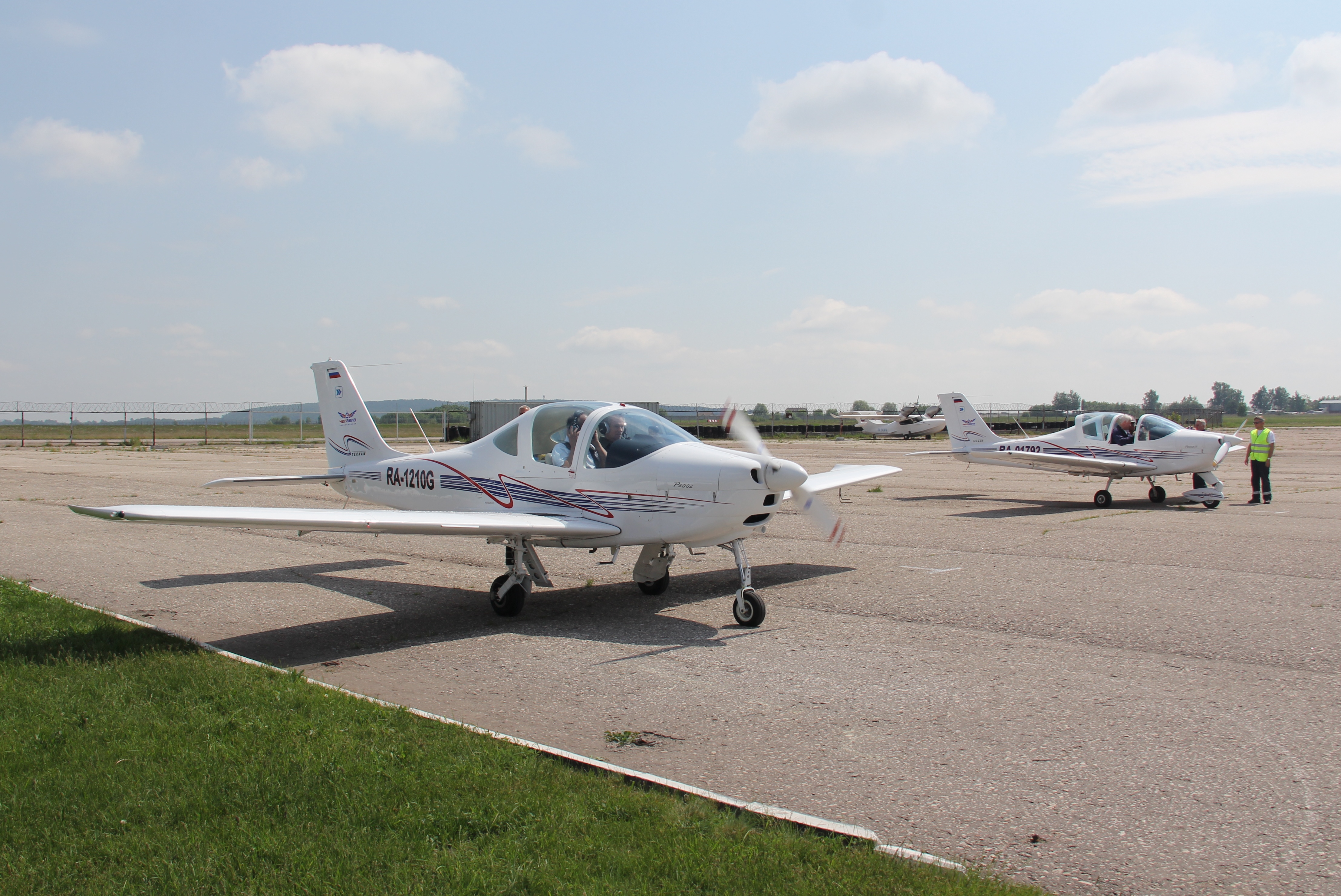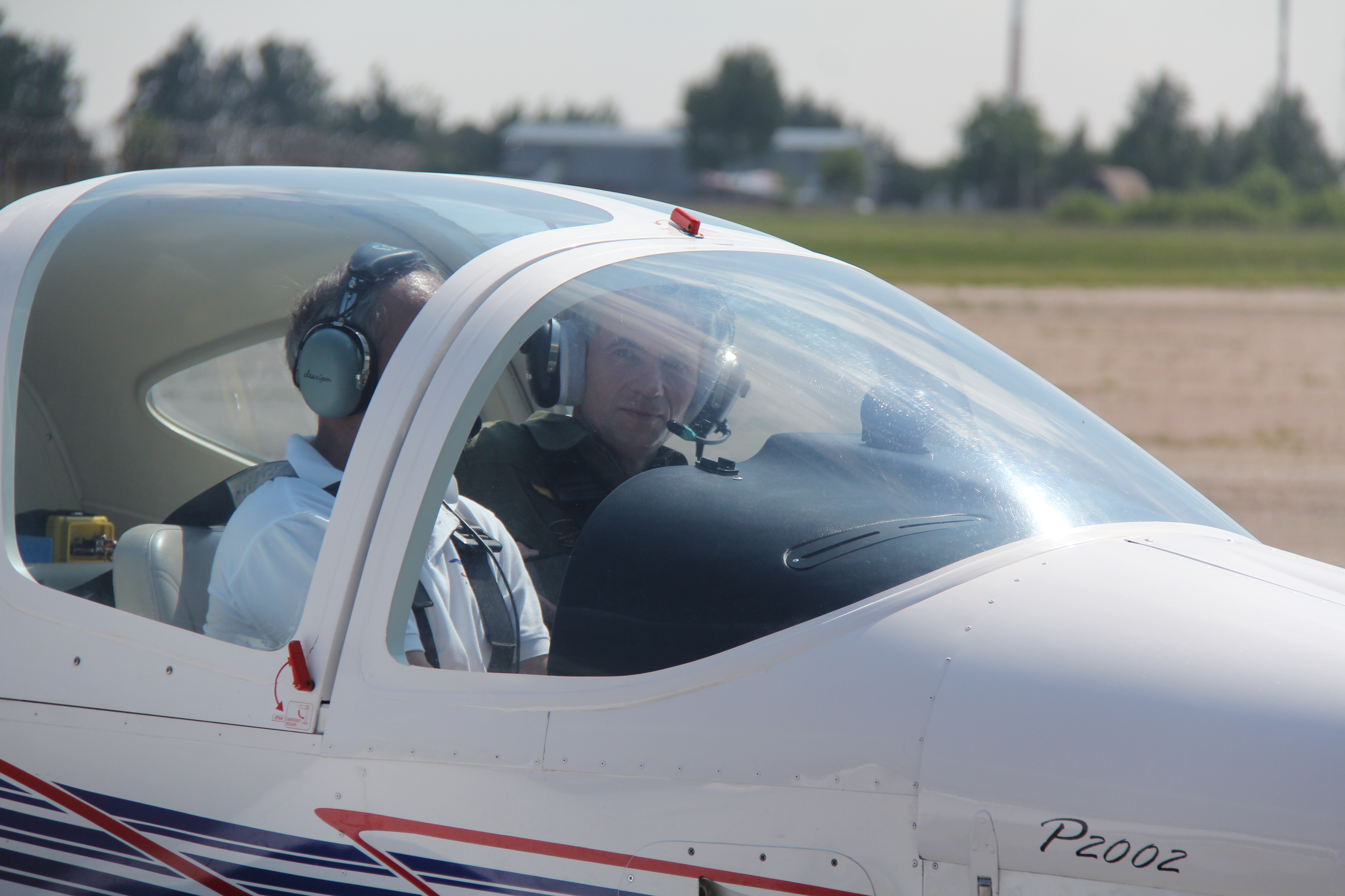 Курсанты лыткаринской авиашколы, 80-летний ветеран Евгений Яковлевич Власов и Глава города Лыткарино Евгений Серёгин совершили полеты на аэродроме в Мячково.