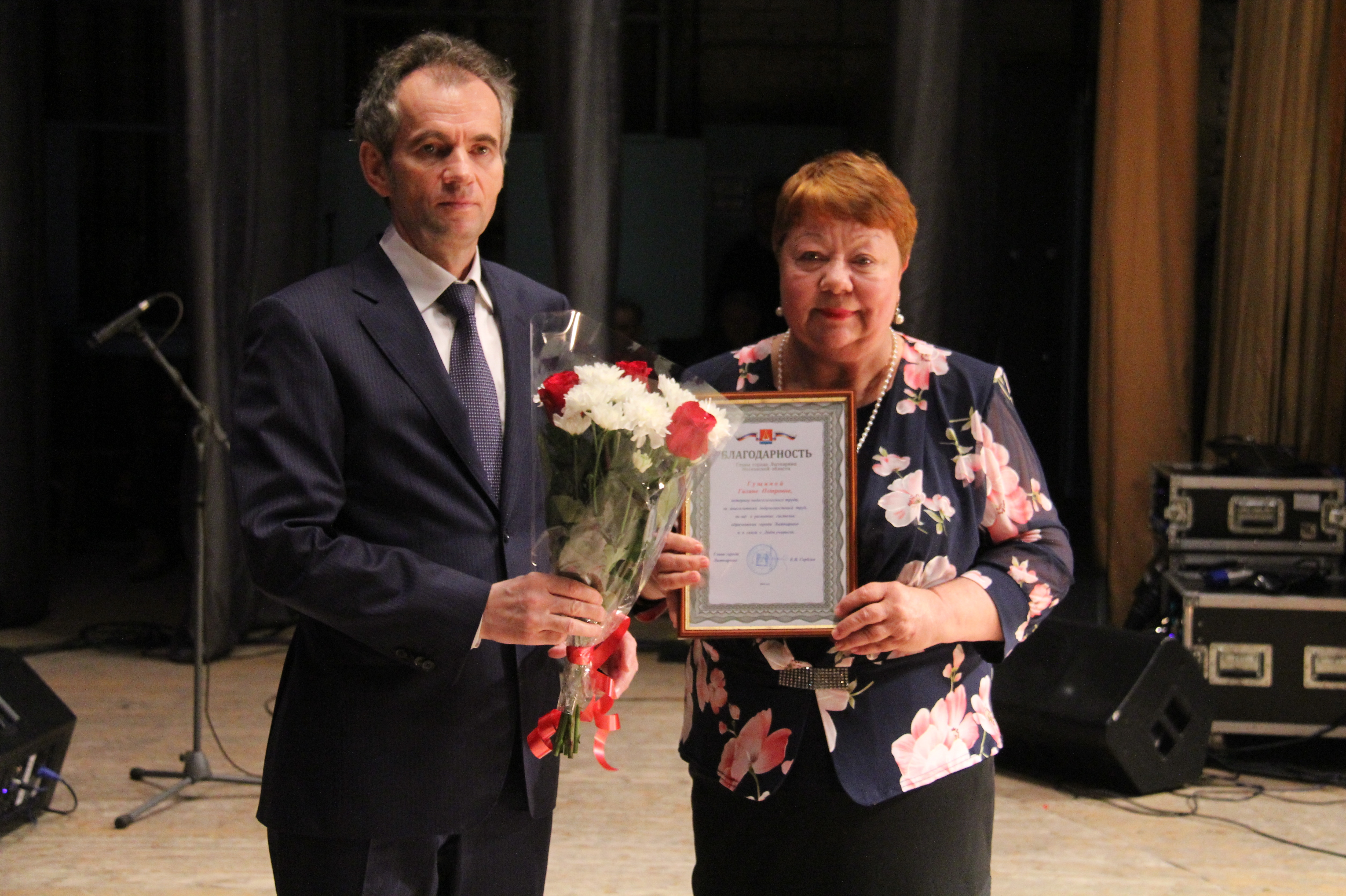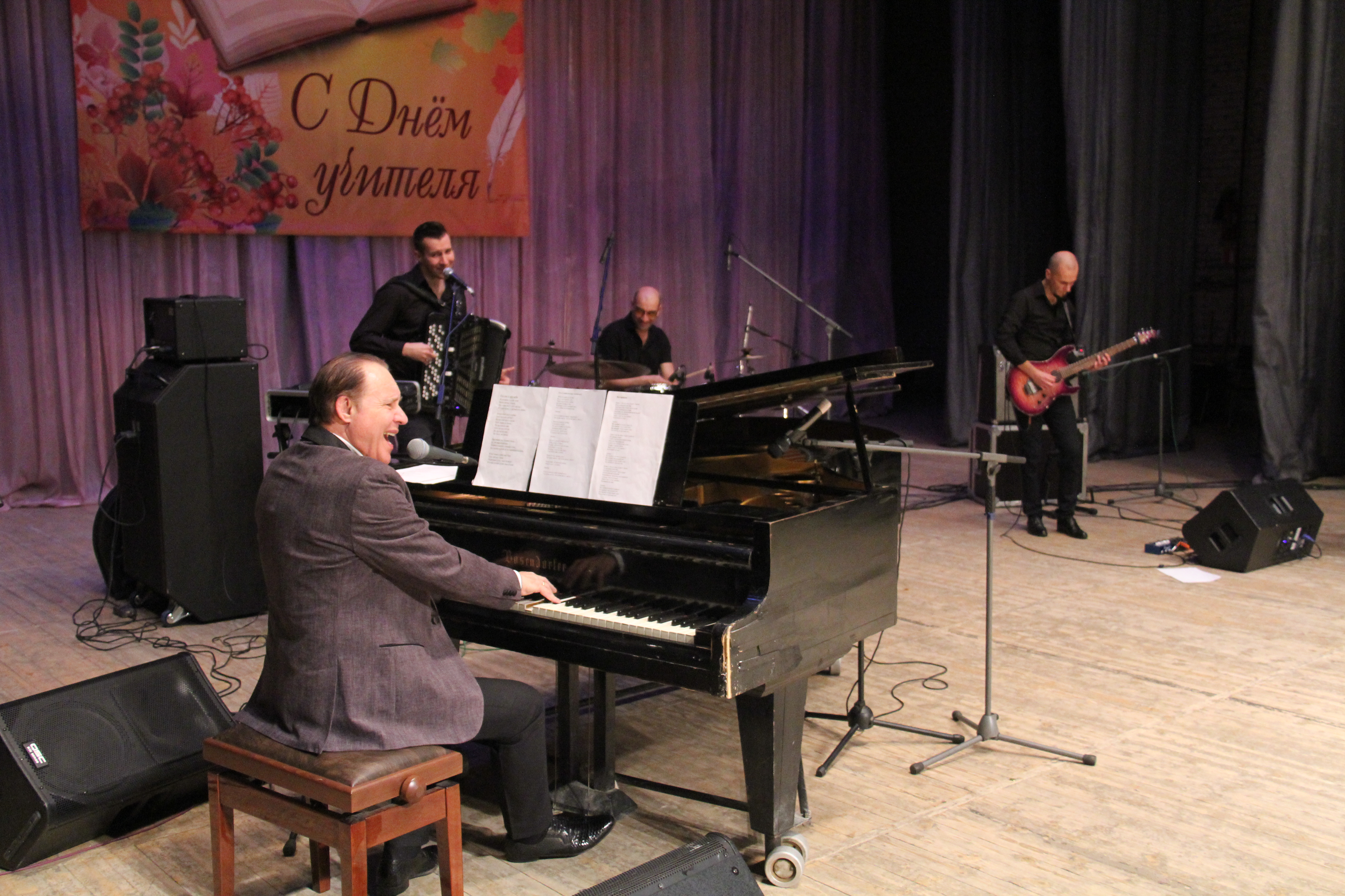 25 октября во Дворце Культура «Мир» прошло торжественное мероприятие, посвященное Дню учителя. Глава города Евгений Серёгин и председатель Совета депутатов Василий Дерябин поздравили педагогов и провели тожественную церемонию награждения. Далее состоялся праздничный концерт с участием группы «Cocktail Project», певицы Ангелины Сергеевой и советскогого и российского композитора, заслуженного деятеля искусств РФ, народного артиста России Максима Дунаевского.