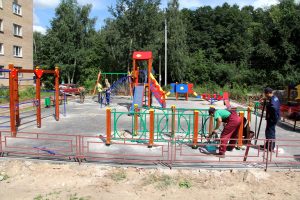 Сегодня, 8 августа работы по благоустройству проходят на квартале 2 около домов 5, 6 и 8. Новая детская площадка почти готова, укладываются новые тротуары и пешеходные дорожки, асфальтируются внутридворовые проезды, готова к асфальтированию новая парковка.