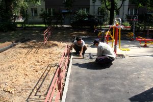 Сегодня, 18 августа работы по монтажу новой детской площадки завершаются на улице Октябрьская около домов 2, 2а, 4 и 6. В этом дворе уже выполнены работы по асфальтированию внутридворового проезда, уложены новые пешеходные дорожки, заасфальтированы парковки.