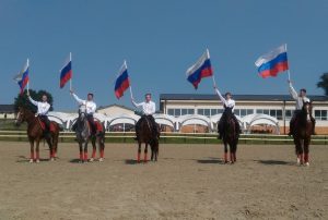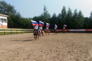 21 августа в конноспортивном комплексе «Созидатель» Глава города Лыткарино Евгений Серёгин вместе со спортсменами-конниками Сборной Московской области по конно-спортивной джигитовке приняли участие в акции, посвященной Дню Российского Флага.