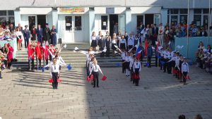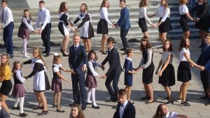 Как всегда, на школьном дворе прошло театрализованное представление, посвященное гимназии. Творческие коллективы готовились к этому дню все лето. Хор с гордостью исполнил песню о России. В патриотическом шествии приняли участие юнармейцы гимназии. Хореографические коллективы «Шарм», «Бренд» представили яркие номера. Самым запоминающимся стал трогательный танец старшеклассников и малышей под названием «Маленькие и большие», подготовленный Ибрагимовой Натаван Алиевной. Не забыли на линейке отметить и отличников – одиннадцатиклассников. Им было предоставлено почетное право поднять флаг России и пронести Факел знаний. Закончился праздник торжественным шествием учащихся и их классных руководителей в свои учебные кабинеты после того, как был дан первый в этом учебном году звонок.