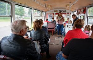 Транспортное средство, с которым в сознании многих людей, в том числе и лыткаринцев, связана целая эпоха, курсировало с экскурсионной программой по основным историческим местам города Лыткарино. Сотрудники Лыткаринского историко–краеведческого музея рассказали о таких объектах как: ДК «Мир», «Красные ворота», лыткаринских предприятиях, благодаря которым вырос целый город, и, конечно же, об усадьбах, храмах и деревне Лыткарино. Данная экскурсия была разработана по инициативе Администрации города коллективом музея и стала настоящим сюрпризом для горожан. Желающих ее посетить оказалось очень много, и по многочисленным просьбам были запущены дополнительные рейсы.