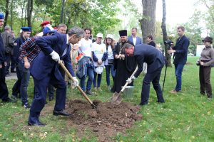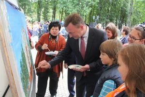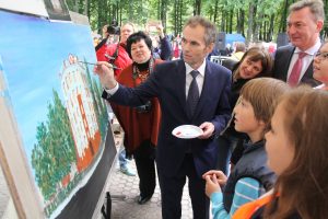 Глава города Евгений Серёгин и заместитель председателя правительства Московской области – начальник областного управления территориальной политики Александр Костомаров в парке ДК «Мир» приняли участие в акции «Наш лес. Посади своё дерево», высадив клён. И внесли свою лепту в написание картины, которую горожане рисовали все вместе.
