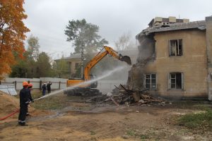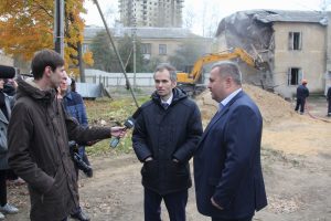 2 октября в Лыткарине на улице Ухтомского Глава города Евгений Серёгин дал старт сносу дома №8 вместе с генеральным директором ПО «Реконструкция» Сергеем Канаевым. В рамках реализации договора развития застроенной территории из дома №8 1953 года постройки в новые квартиры в новых домах были переселены 57 жителей. На территории сносимого дома будет возведён 17-ти этажный жилой дом, с жилой площадью 8800 кв.м. Евгений Викторович рассказал представителям Молодежного парламента города Лыткарино и Совета молодежи при Главе города о реализации программы по переселению из ветхого жилья.