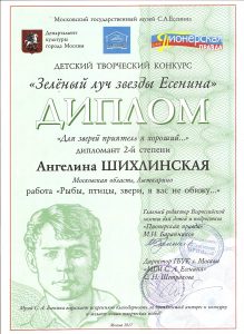 Ангелина стала дипломантом 2-ой степени и получила награду на торжественном вручении в музее С.А.Есенина .