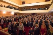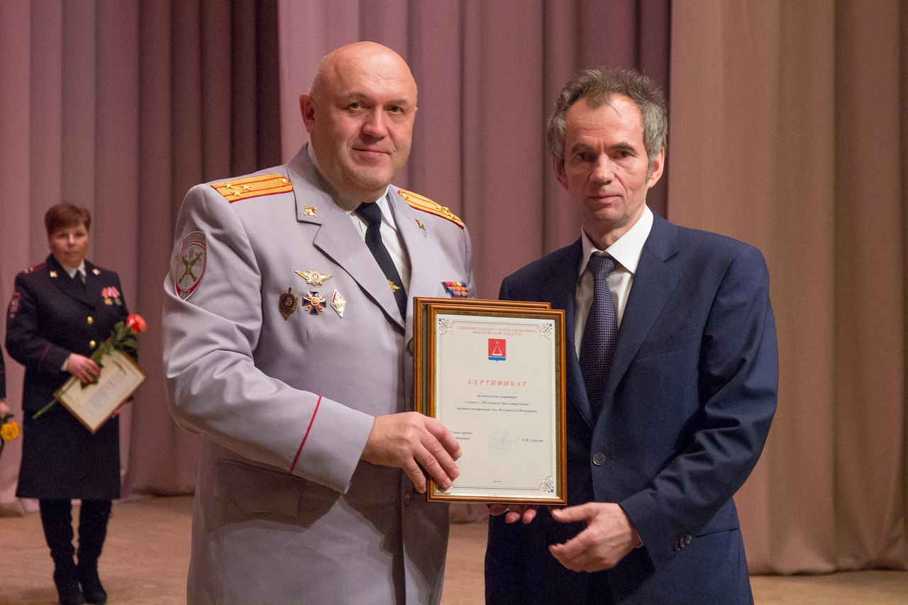 В этом году исполняется 100 лет со дня образования органов внутренних дел России. В преддверии юбилея в главном зале Дворца культуры «Мир» прошла церемония награждения сотрудников полиции МУ МВД России «Люберецкое». Со сцены виновников торжества с профессиональным праздником поздравили руководители ведомства, Глава нашего города Евгений Серёгин, Главы близлежащих Подмосковных городов. Они вручили заслуженным работникам почётные медали, благодарственные письма и ключи от квартир.