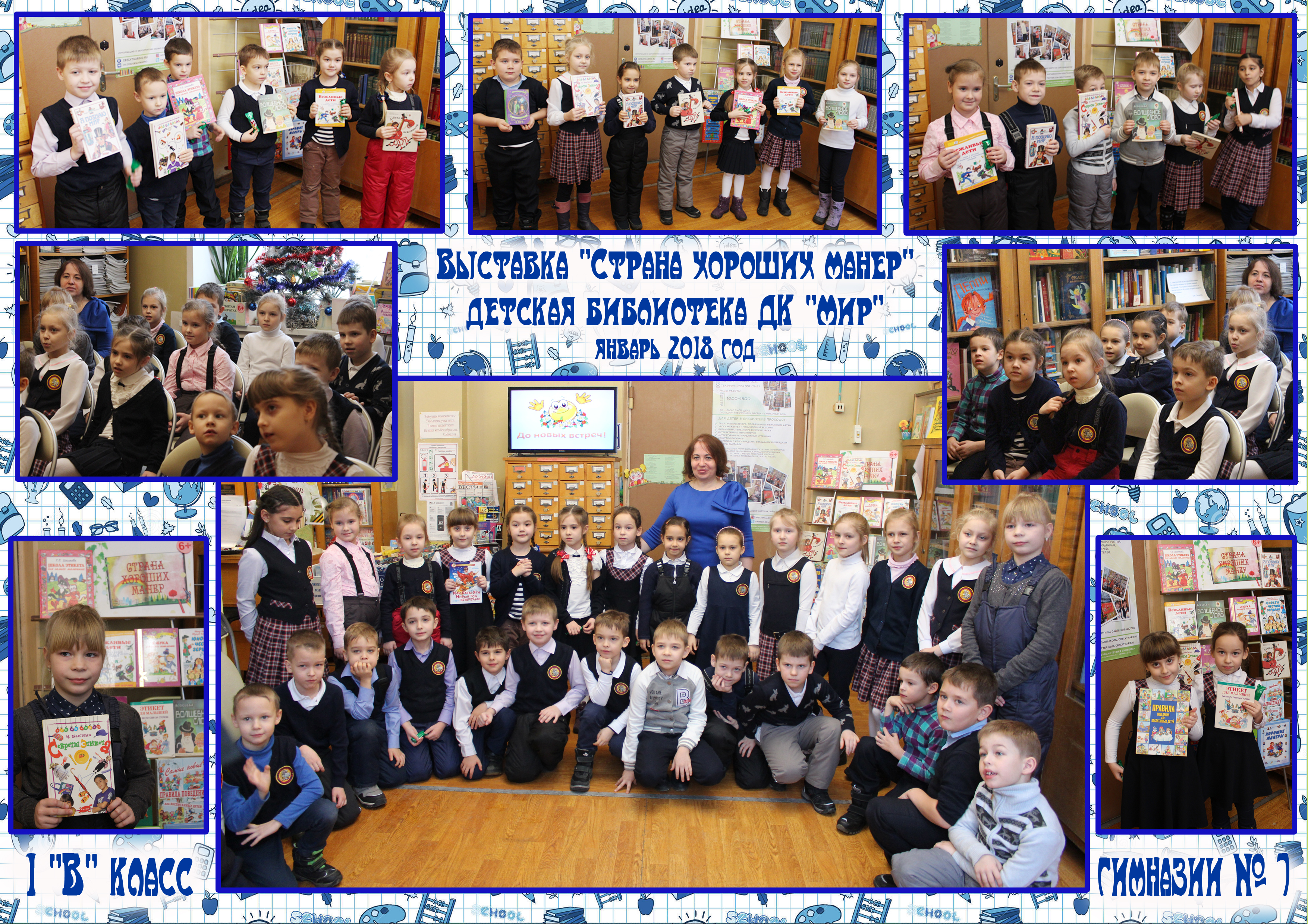 17 января в детском отделе Городской библиотеки ДК «Мир» прошло интерактивное мероприятие «Страна хороших манер». Ученики 1 «В» класса гимназии №7 вместе с классным руководителем Натальей Васильевной Шестаковой совершили путешествие в мир этикета и вежливости. Дети познакомились с историей праздника и сыграли в игры «Доскажи словечко», «Вежливые слова», «Как поступить?». Мероприятие сопровождалось показами мультфильмов « О том, как свинка Чуня была воспитанной», «Трям, здравствуйте!» и другими видеороликами. К мероприятию была подготовлена одноименная тематическая выставка.