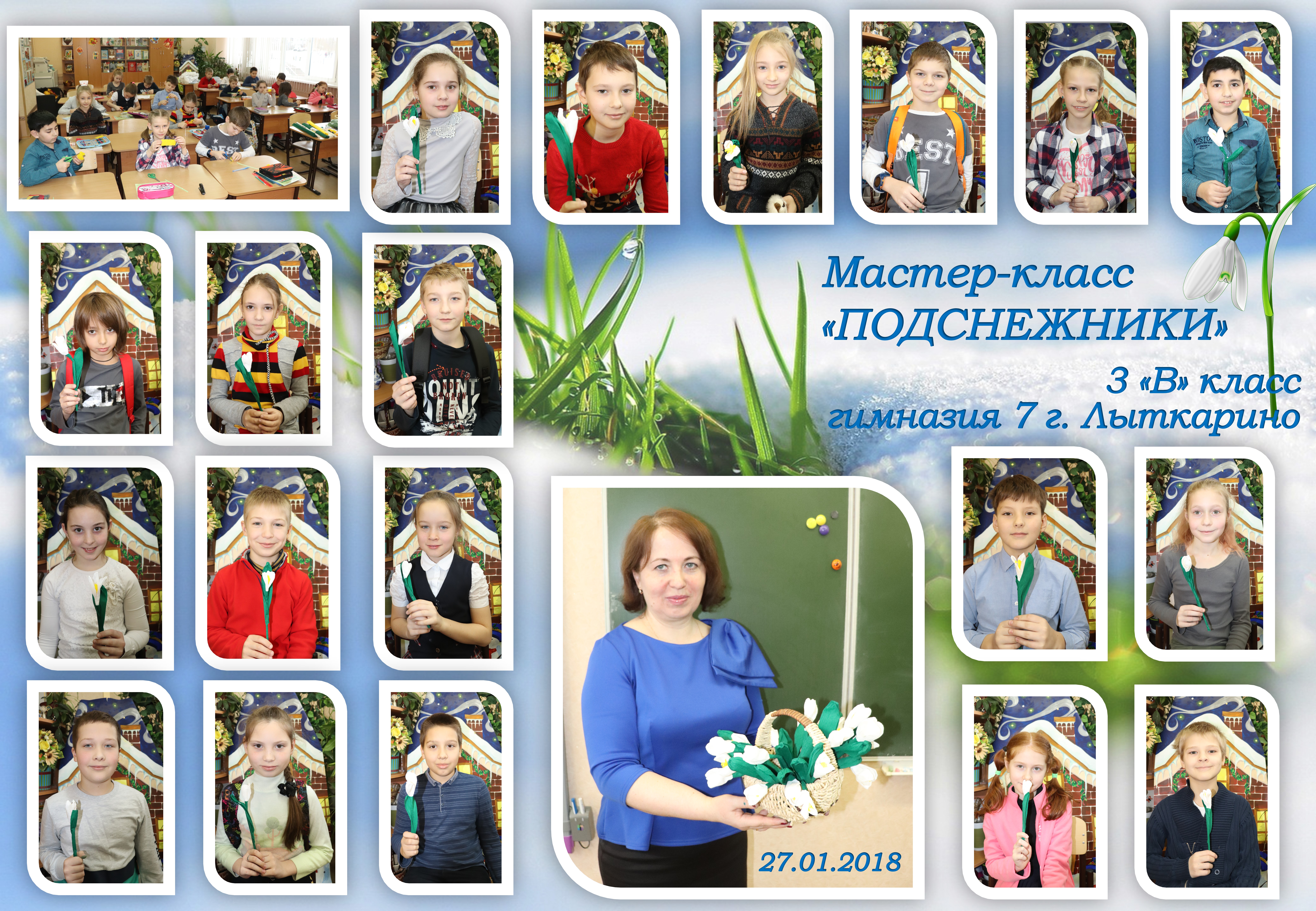 Гимназисты 3 «В» класса МОУ гимназии №7 на проектной деятельности тоже стали на мгновение волшебниками. Классный руководитель Наталья Васильевна Шестакова и член родительского комитета Ульяна Владимировна Никулова провели мастер-класс «Подснежники». Целью данного занятия было не только познакомиться с цветами, научиться делать их из бумаги, но и собрать корзину из подснежников для постановки «Двенадцати месяцев» на фестивале искусств, который пройдёт на сцене гимназии в феврале.
