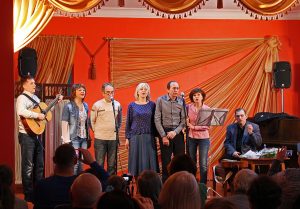 По доброй традиции на поэтические вечера Аркадий Эйдман приглашает своих друзей. Зрители услышали стихи и песни поэтов и бардов, которые приехали на вечер из Москвы и городов Подмосковья.