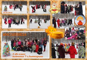 Учащиеся 3 «В» класса МОУ гимназии №7 с классным руководителем Натальей Васильевной Шестаковой и родителями учащихся дружно проводили Масленицу. На лесной поляне гимназисты приняли активное участие в народных играх и эстафетах. После весёлых соревнований дети и взрослые угощались блинами с горячим чаем. Традиционным стал хоровод вокруг чучела Масленицы: