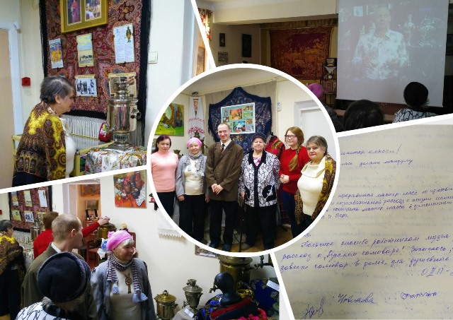 В России старинный самовар – это символ семейного очага, уюта, дружеского общения. Он был центральным предметом чаепития, которое с XIX века существовало как часть национальной культурной традиции. Всё многообразие экспонируемых вещей познакомило посетителей с типологией «водогрейных сосудов», разнообразием форм и красотой убранства самоваров, с особенностями декора, которые были характерны для центров самоварного производства в Российской империи. После экскурсии гостям был показан фильм, в котором было подробно рассказано о том, как изготавливали и продавали самовары, какие предметы окружали самовар на чайном столе и были обязательной частью русского чаепития.