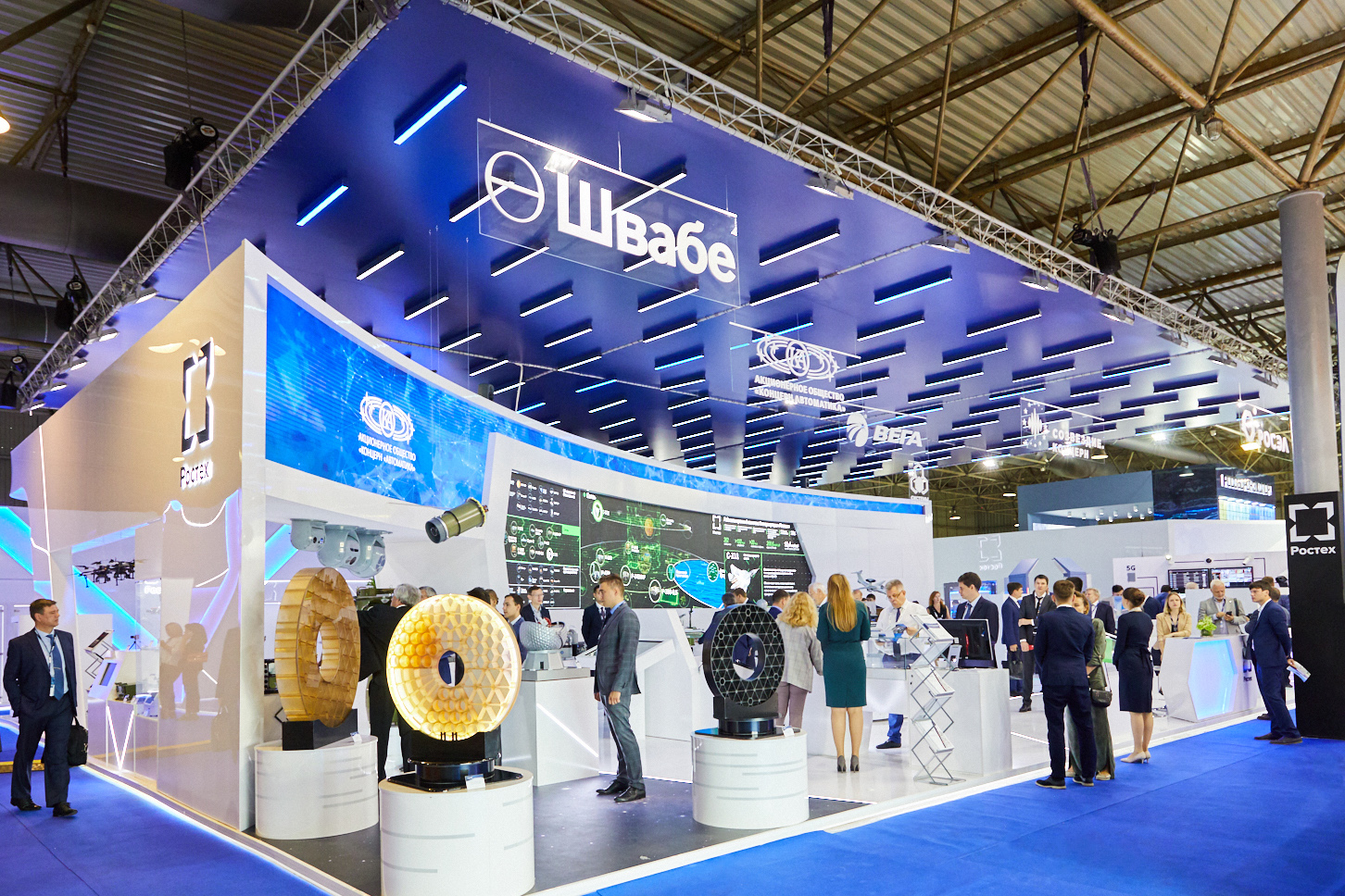 Свою продукцию Холдинг «Швабе» представляет на двух стендах. Основную часть разместили в составе объединенной экспозиции радиоэлектронного комплекса (РЭК) Госкорпорации Ростех.