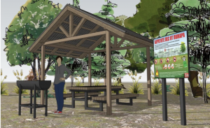 Каждая пикниковая зона включает в себя 6 комплектов мебели, состоящей из стола, 2-х скамей, мангала, урны, навеса и одновременно может вместить более 48 человек.