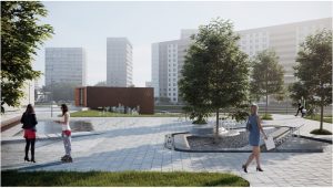 Ниже этой площади, у Советской улицы, разместится памп-трек — специальная велосипедная трасса с виражами с горками, подъемами и спусками. Еще ниже, ближе к Тимоховскому пруду, создадут скейт-парк – специальную площадку для экстремального катания на роликовых досках и самокатах. На склоне между скейт-парком и кинотеатром «Искра» организуют амфитеатр – скамейки с обзором на памп-трек, скейт-парк и Тимоховский пруд.