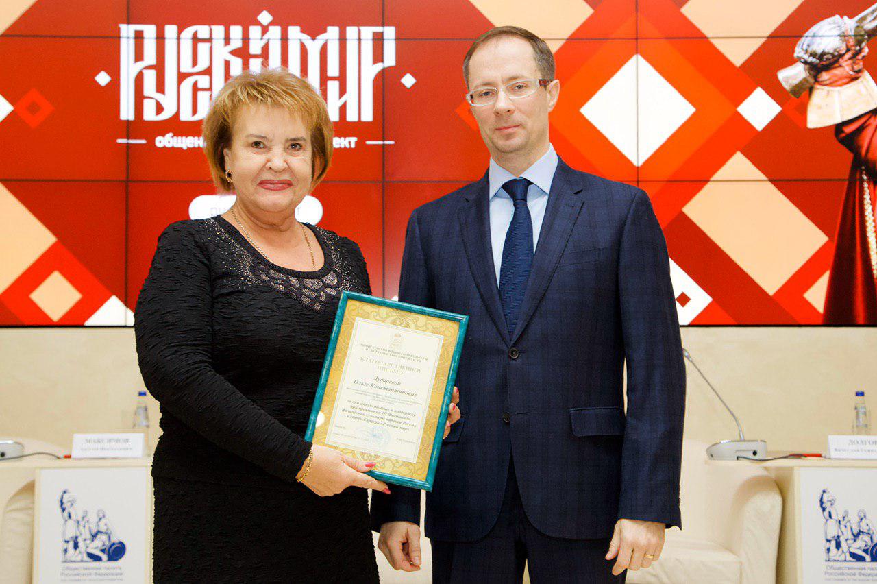 18 декабря 2019 года в Общественной Палате Российской Федерации состоялась встреча участников и организаторов фестиваля «Русский мир». Министр физической культуры и спорта Московской области поблагодарил организаторов и участников мероприятия.