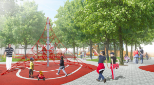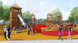 В парковом пространстве будут приведены в порядок существующее оборудование и покрытия, добавлены новые игровые комплексы для детей разных возрастов. Игровая площадка парка будет напоминать средневековый замок: здесь построят башни, лабиринты, смотровые площадки, мосты и горки. В обновленном общественном пространстве дети смогут полностью погрузиться в мир образов, а необычные формы и активные цвета парка дополнят пейзаж.